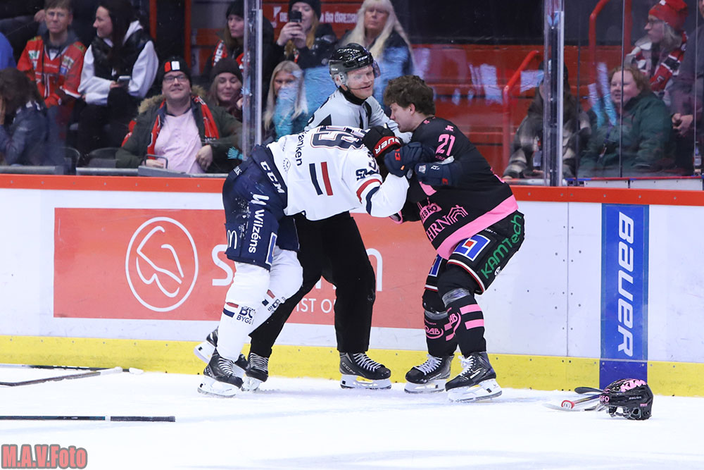 Med 5-2 på resultattavlan stängde Örebro helt ner Linköping i tredje perioden. Tillslut rann tålamodet över och publiken fick se ett slagsmål. Theodor Lennström och Luke Martin fick matchstraff efter att slagits med varandra, upprinnelsen var en tripping-utvisning på Lennström.