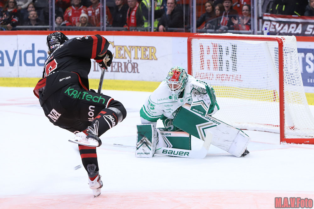 Rögle bytte målvakt i pausen och Christoffer Rifalk kom in istället för Arvid Holm. På andra sidan rinken imponerade Jhonas Enroth som visar att han fortfarande är en toppmålvakt. Linus Sandin skulle få in en reducering för gästerna men William Wikman utökade ledningen på nytt.